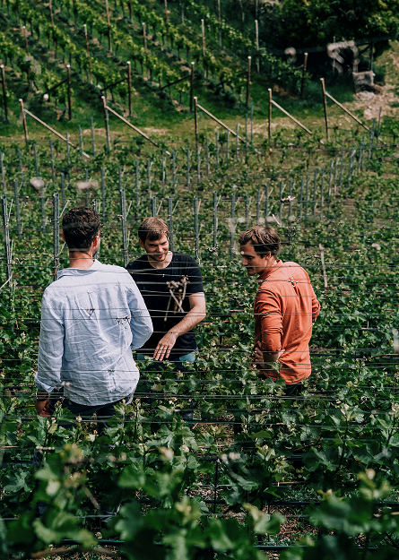 Schon bald schlossen sich Michaels Freunde aus Studienzeiten an: Harald Cronst von der Kellerei Kurtatsch in Südtirol und Sebastian von Schmidt am Bodensee in Bayern. So entstand das Flein Friendship.