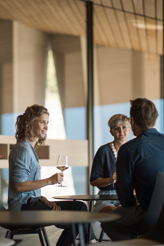 Wer vorbeikommt, darf sich freuen: In der neuen Vinothek lassen sich Wein und Flein mit grandiosem Ausblick verkosten. Oder man entdeckt die Kellerei bei einer Führung und geht auf Weinexpedition von den höchsten Lagen bis ins Tal – mit Kostproben direkt am Ursprung.